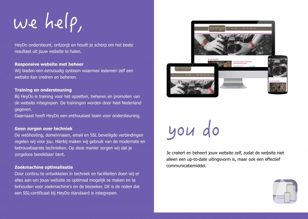HeyDo staat voor : We Help, You Do en kost slechts 19,95 per maand.